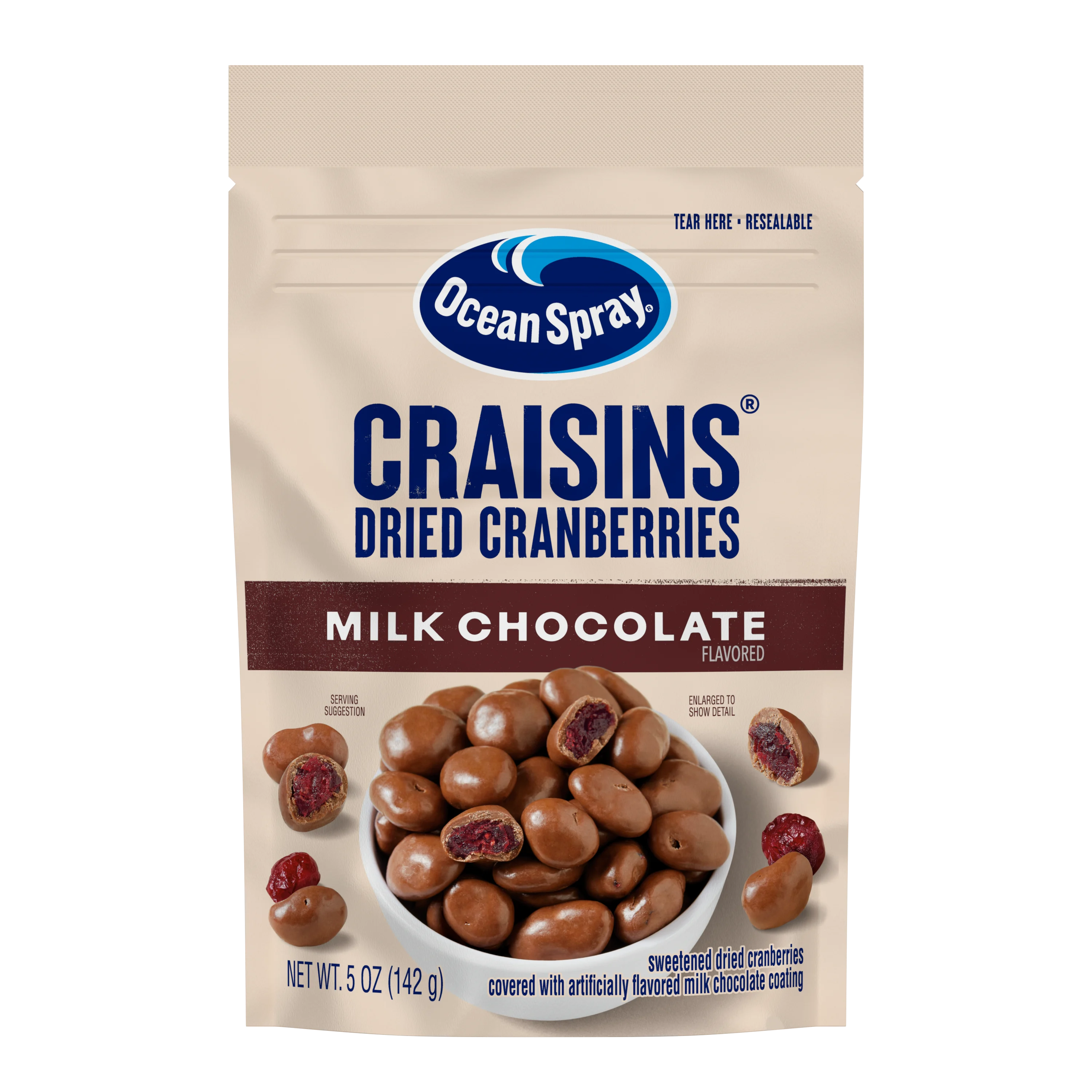 Snacking just got better. Ocean Spray® Milk Chocolate Dipped Cranberry Bites. Dive into the fruit-full world of sweetened dried cranberries now dipped in smooth milk chocolate goodness. This dried fruit is the perfect chocolate snack. Real, bold dried cranberries dipped in smooth milk chocolate in every dried fruit pouch. Enjoy as on the go snacks. Stash in your desk drawer. Share with friends and family. Or…don't. Stay in. Cozy up on that couch. Sprinkle over your favorite ice cream. And dig in. You and your taste buds deserve it. Step up your entertaining game by adding their bold flavor to apps, charcuterie boards and more. They're also just really good on their own. However you use them, don't let anything stand in the way of your Ocean Spray® Milk Chocolate Dipped Cranberry Bites fix. Keep sealed in a dry place to keep these dried cranberry bites fresh for longer. Ocean Spray believes in the power of the mighty cranberry; Born Tart. Raised Bold.™